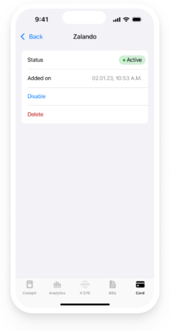 Keeping everyday finances under control can be challenging. The "one" app makes this easier than ever. Manage all your credit, debit and prepaid cards securely and easily in one central location, set your individual spending targets and take advantage of other practical features.